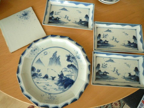 こちらは、福泉窯で買ったものです。今回、2日目に有田焼卸団地の近くにあった窯元まで行き、たくさんある中から丹念に選びました。角皿は元々あまり売られていない上、手頃なサイズがなく、やっと見つけたときにはすごくうれしかったです。