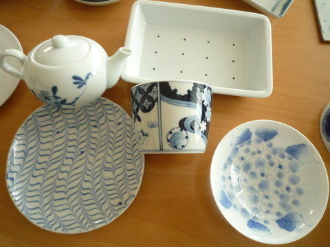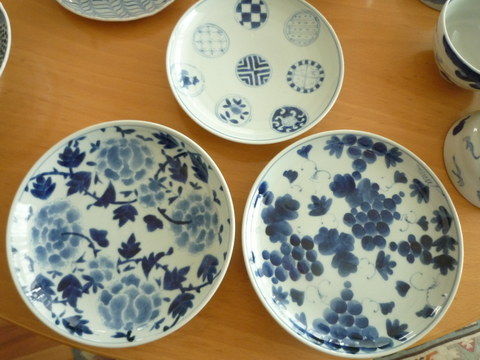 白い食器がすきですが、次に素敵だと思うのはやはり紺で色が入ってるものです。