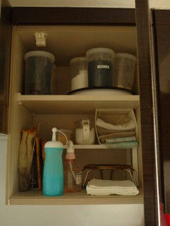タオル布巾のしまい場所は、吊り戸棚のこの位置です。3枚ほど置くことに決めました(^^)