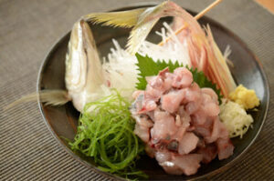 この他、青じそ、おごのりを添えました。…本来、こちらの方を「つま」と言います。