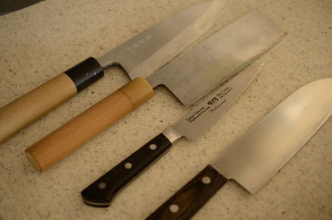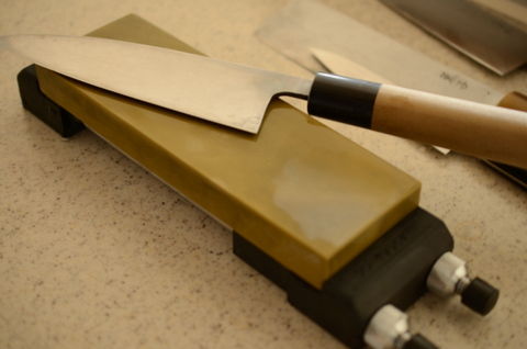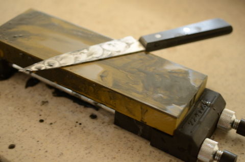 砥石の吸水が終わったらどんどん研いでいきます。私は出刃と菜切りとペティナイフをよく使うのでたいていその3本はがっちり研ぎます。