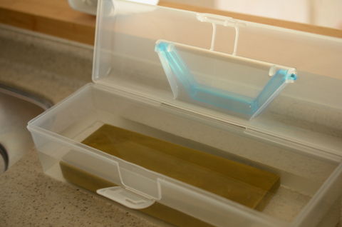 たいてい、仕上げ砥で十分ですので、まず仕上げ砥以外を箱から出して水を入れてしまいます。砥石の吸水のためにわざわざバットとか用意するのが面倒なので^^;