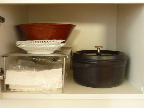 ぽっかり空いた収納スペースには、キッチン用品をしまうことにしました。