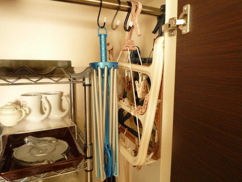 ピンチ付ハンガーやパラソルハンガーなどの物干し用具、皆さんはどこへ収納なさっていますでしょうか?