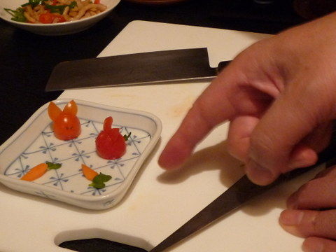 余興?で店主の林さんが、簡単なむきものの作り方を教えてくれました。かわいい(^^)