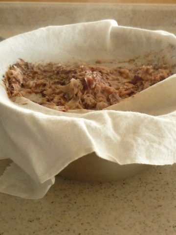 ラ・バーゼのボウルに、同じラ・バーゼの浅型ざるをセットして、布も広げて濾します。透明な一番だしが取れますよ(^^)