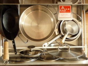 さらに、ウチでは、取り出しやすくするために、収納扉の内側にフックを付けて吊るすことにしました。