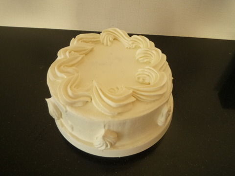 生クリームをさらに泡立てて固くしてから絞り出しました。側面の絞りは押しつけるようにしないと落ちそうになったので焦りました。