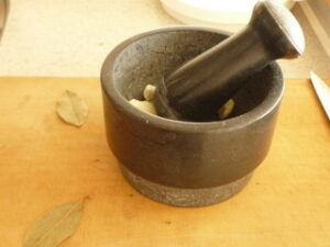 この乳鉢ならニンニクを放り込んで乳棒で2,3回たたくだけであっという間にいい感じにつぶしてくれるのですごく便利です。