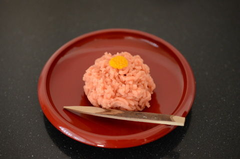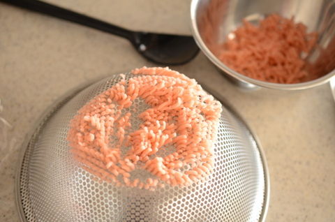 ↑この、ボソボソした質感を出すために、本当は「きんとんぶるい」という高価な濾し網が必要なのですが・・・