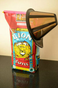 代わりに、普通に粉のコーヒーを淹れてみる事にしました。コストコのライオンコーヒーを買ってきて、家にあったボダムのゴールドフィルターを使うことになりました。