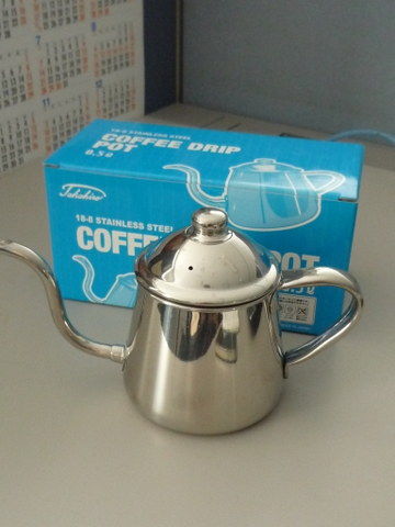 試しに会社で飲んでみると、ドリップバッグよりずっとおいしいではありませんか。そうすると注ぎ口の細い、専用のコーヒーポットを使ってみたくなりました。