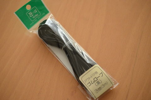 そこでユザワヤに行って<アウトドア用ゴムロープ(黒)3mm(3m)>というのを買ってきました。420円でした。