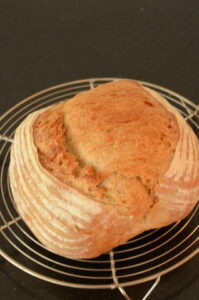 25℃で一晩発酵させて朝起きたらもういい感じに膨らんでいたので、慌ててオーブンをつけて焼き上げました。