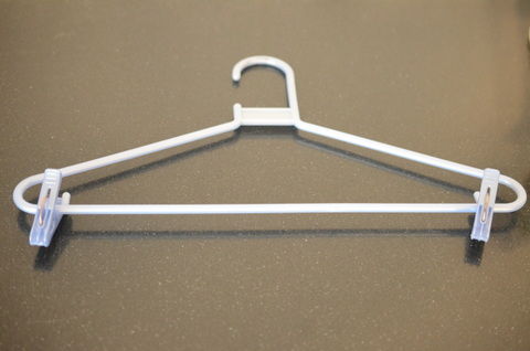 100円ショップに行けば買える話ですが、そこをあえて家にあったハンガーにピンチを取り付けて手作りしてみました。1円も使わずにすんだので嬉しかったです。