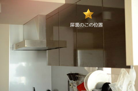 キッチンの吊り戸棚に・・・→「扉裏にフックをつける
