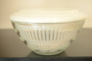 蓋は持ち手に引っかけられ、伏せ気味にして加熱することができます。