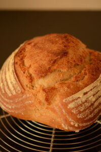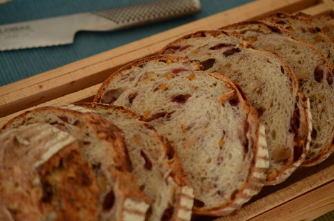 カンパーニュの中には、ラム酒漬けのドライクランベリー、自家製夏みかんピール、くるみを入れました。