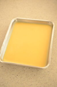 ただし、このレシピで使われる、「ル・カンテンウルトラ」が少量入手が難しく、一方で家には大量のゼラチンがあったので、ル・カンテンウルトラ:ゼラチン=2:1で置き換えて作ってみました。ダメならまた配合を変えて作り直すつもりで・・・。
