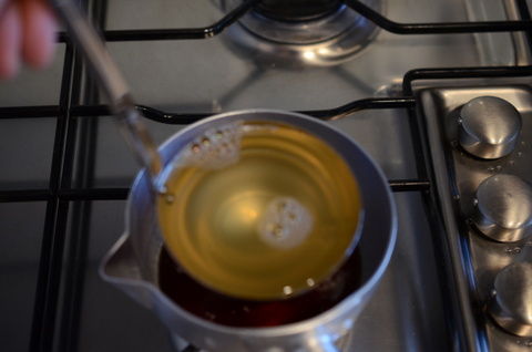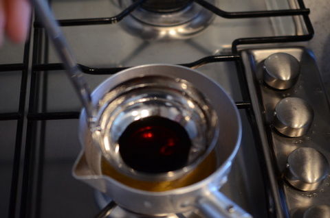 まず、小鍋にみりんを15ml×2の合計30ml計りました。