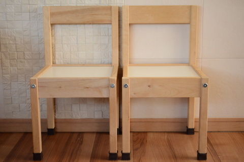 実はこれ、IKEAの「LATT 子供用テーブル チェア2脚付」の使わなくなったチェア2脚をリメイクしてオットが作ったのです。もとはこちら↓です。