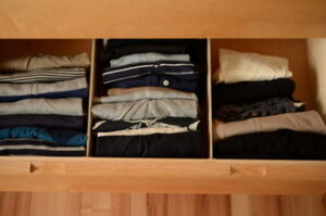 ↓すっきりしたチェストの引き出し。季節の洋服はほとんどこの一段だけです。