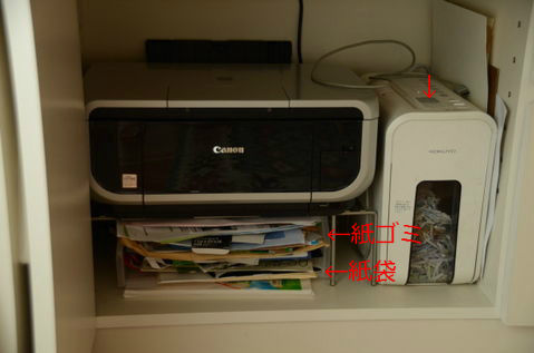 スキャンしたらもういらないや、という重要度の低い書類や、遠足後の「遠足のお知らせ」のような期限が切れた書類は、即刻、マルチカウンターの中の、紙ゴミ置き場に捨てます。個人情報が含まれている場合は、隣のシュレッダーにかけます。