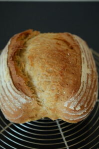 焼き上がったカンパーニュは、週末の家族の朝食に使います。