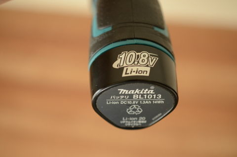 このドライバドリル、実は、以前からウチにある、マキタのコードレス掃除機と電池が共通の10.8Vものを選びました。