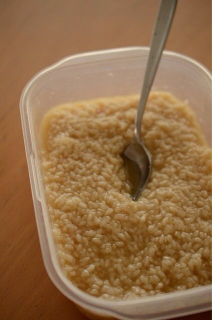 20%の塩水にほぐし入れ、一週間ほど寝かせるだけで、とろっとろの塩麹が完成しました!塩麹作り、楽ちんです。