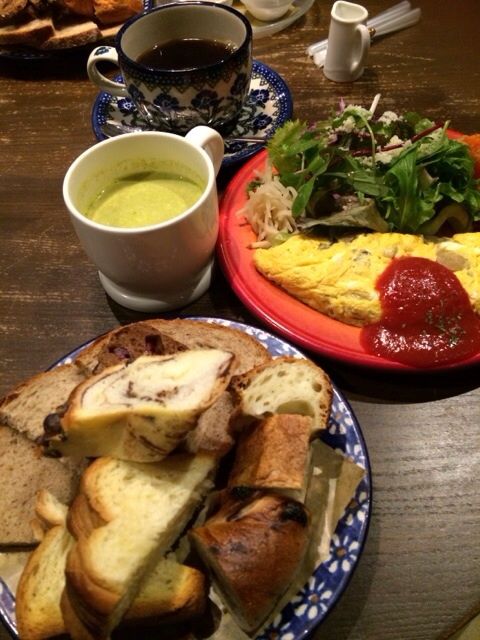 温かいスープ、ドリンク、オムレツ&サラダ、パンの盛り合わせ がついてきてニッコリ。