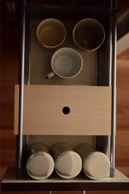 それと、引出しの容量を最大限に生かすため、茶缶を細長いもの(直径6.5cm, 高さ17.5cm)に交換しました。