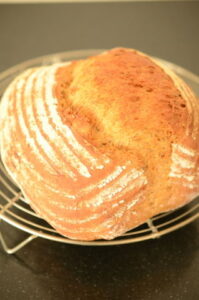 野菜室で8時間ほど寝かせた生地を成形、ケトリングしてから焼き上げました。