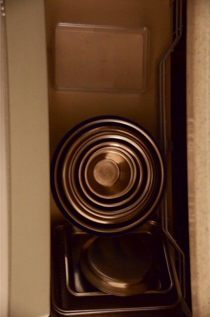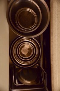 これら3つに分けたボウル類は、ただ並べただけでは引き出しの中に入らないのですが…。