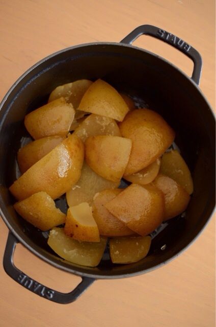 ひたひたの砂糖水を入れて火にかけ、煮切りました。