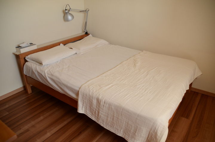 羽毛布団の代わりにガーゼケットを出してきました。暑いので慌てて扇風機も出しました。