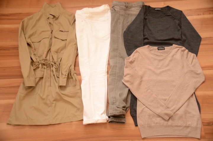 この他、写真にはありませんが、濃紺のデニム、ツイードパンツ、家着のニット、ウールワンピースなども処分済みで、合計11枚となりました。