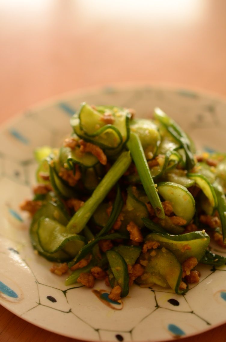 きゅうりと茄子を塩もみしてよく水気を絞り、ドライカレーにしました。