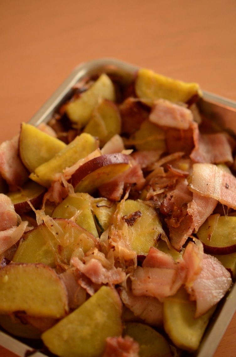 らでぃっしゅぼーやからさつまいもがきたので、スライスして蒸して、玉ねぎとベーコンで炒め合わせた「リヨン風」を作りました。これいつもは南瓜で作るのですが。さつまいもで作ってもまた良い感じです!