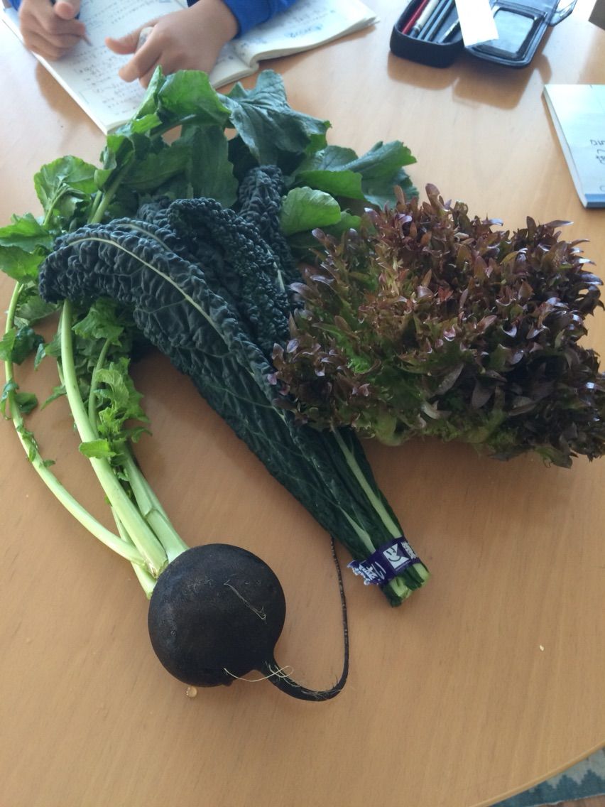 黒大根は鶏肉と油揚げでさっと煮し、黒キャベツはスープに、ハンサムサニーはサラダにしました。