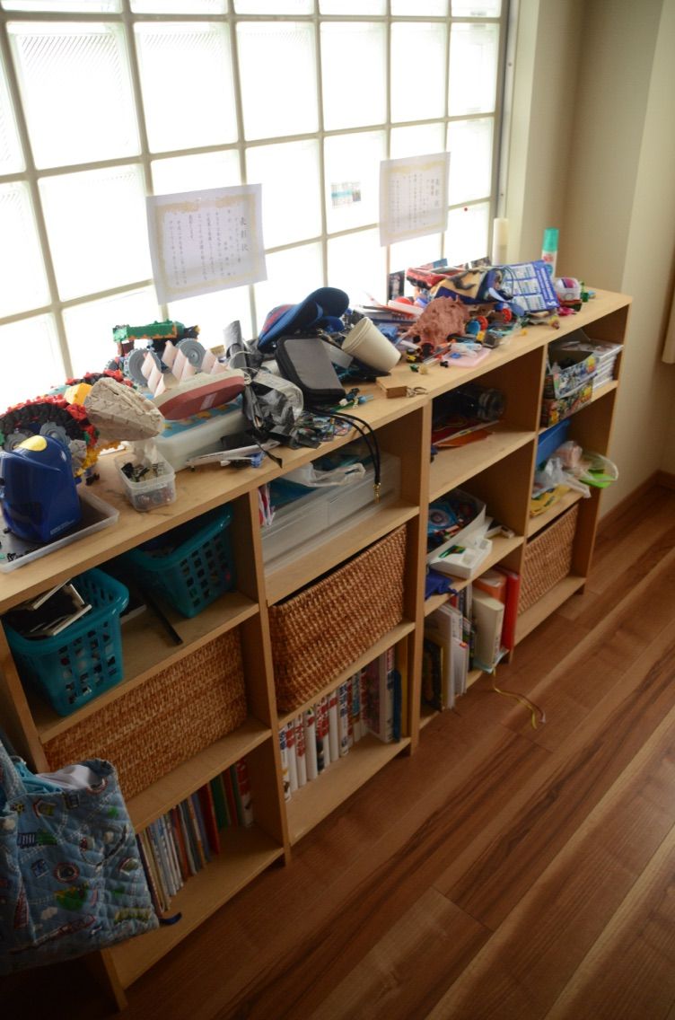 おもちゃや工作品があふれて床の1/4くらいが埋まってました。昨年始めたサッカーのユニフォーム類も置き場がなくて散らかってます。