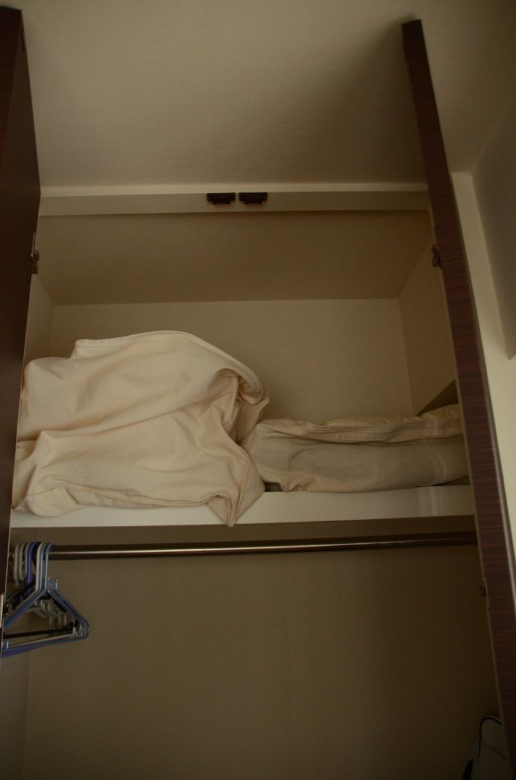 息子のものではない、あまり使わない布類も断捨離し、季節外の布団はケースに入れて上段だけに収めました。