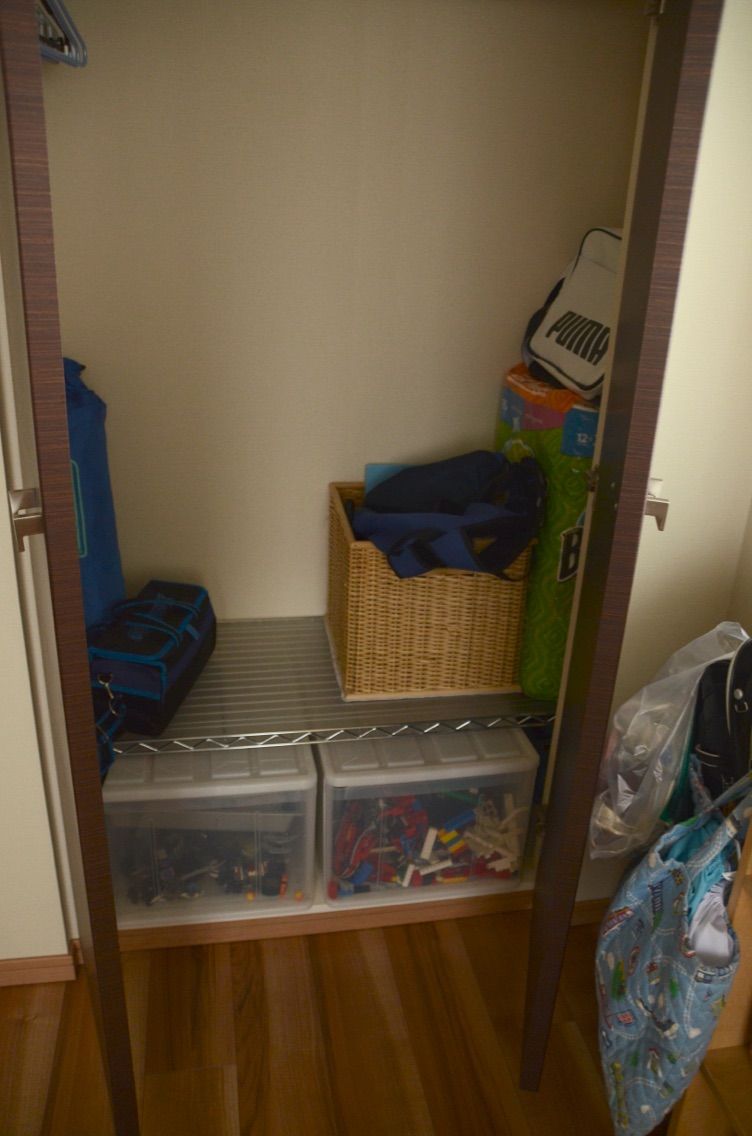 クローゼットの下部の、プラケースいっぱいのプラレールセット、もういらないので全部捨てて、レゴとレゴニンジャゴーとマインドストーム(レゴのプログラムロボット教材)を収納しました。