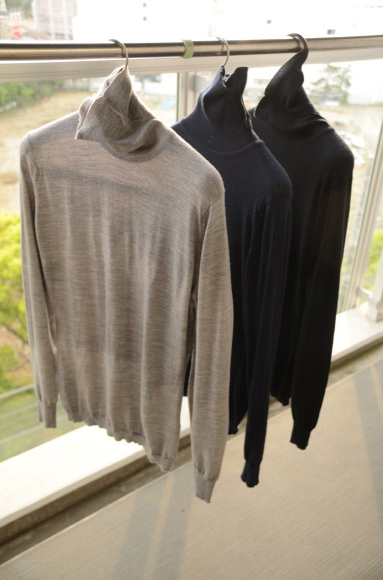 次に、John Smedleyのウールタートルネックニット3兄弟(グレー、ネイビー、黒)