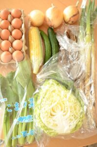 にんじん、 さつまいも、 ごぼう、 かぶ、 レタス、 小松菜、 トマト、 ズッキーニ、 とうもろこし、 しめじ