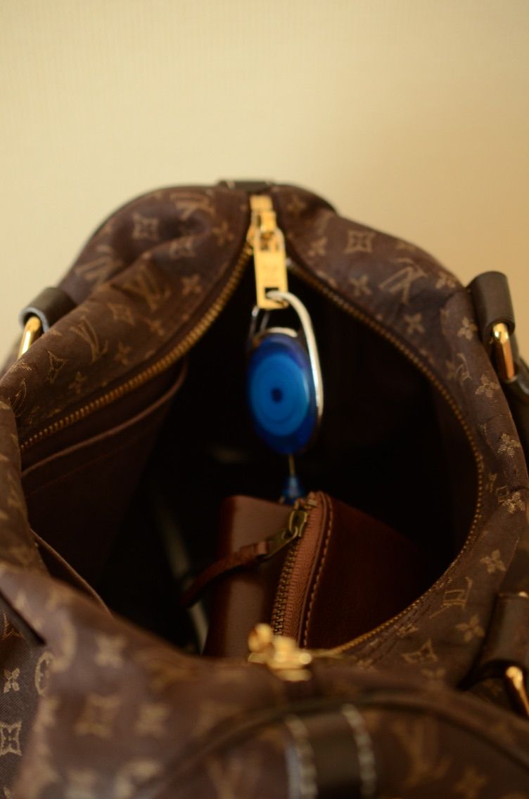 キー収納部に、リール付きカラビナを付けて、バッグのファスナーに取り付けて使ってます。