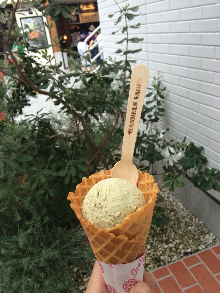 アイスのお店でピスタチオ味を。2日にいっぺん作るって言ってました。すごくおいしかったです(^^)