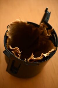 後始末は、フィルターを取り出して、コーヒーのカスをカードでかき取って捨て、フィルターを軽く水洗いするだけです。