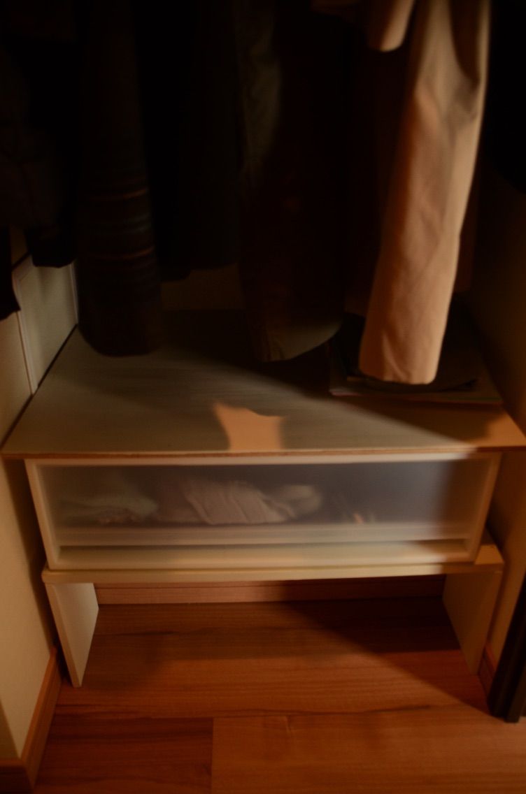 コートの足元には、無印良品のプラケースが2段あったのですが、1段だけになりました。