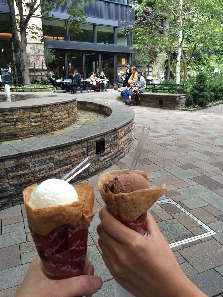 ガレットアイスのせ。ガレットは作りおきせずに目の前で焼いてくれます。そういうのに弱い私。
